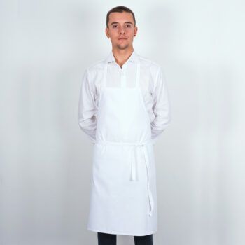 Delantal tipo francés, largo, sin peto y con abertura. Con raya diplomática en gris y blanco, este delantal está diseñado para vestir a los camareros y camareras de sala dándoles un toque de elegancia. Tiene una abertura frontal para asegurar la libertad de movimiento. Es el delantal indispensable en negocios hosteleros y de restauración que organizan eventos ya que aúna la sofisticación que requieren las celebraciones especiales y la comodidad que los profesionales necesitan para cumplir bien su labor.