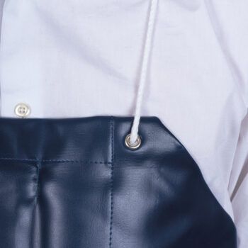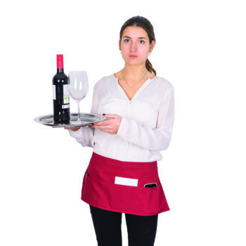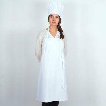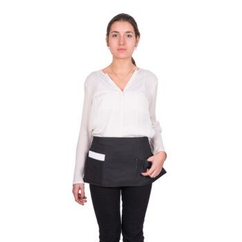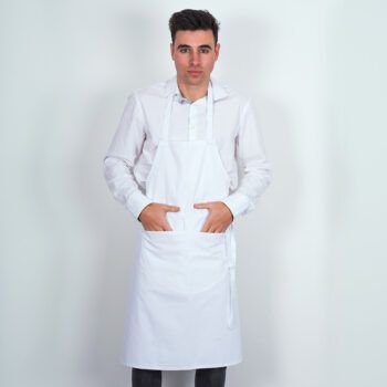 Delantal con peto y bolsillo de tejido muy ligero ideal para terrazas. Cuenta con un bolsillo en su lateral derecho y cinta de espiga negra en cintura y cuello, haciendo de él un delantal sencillo y práctico.